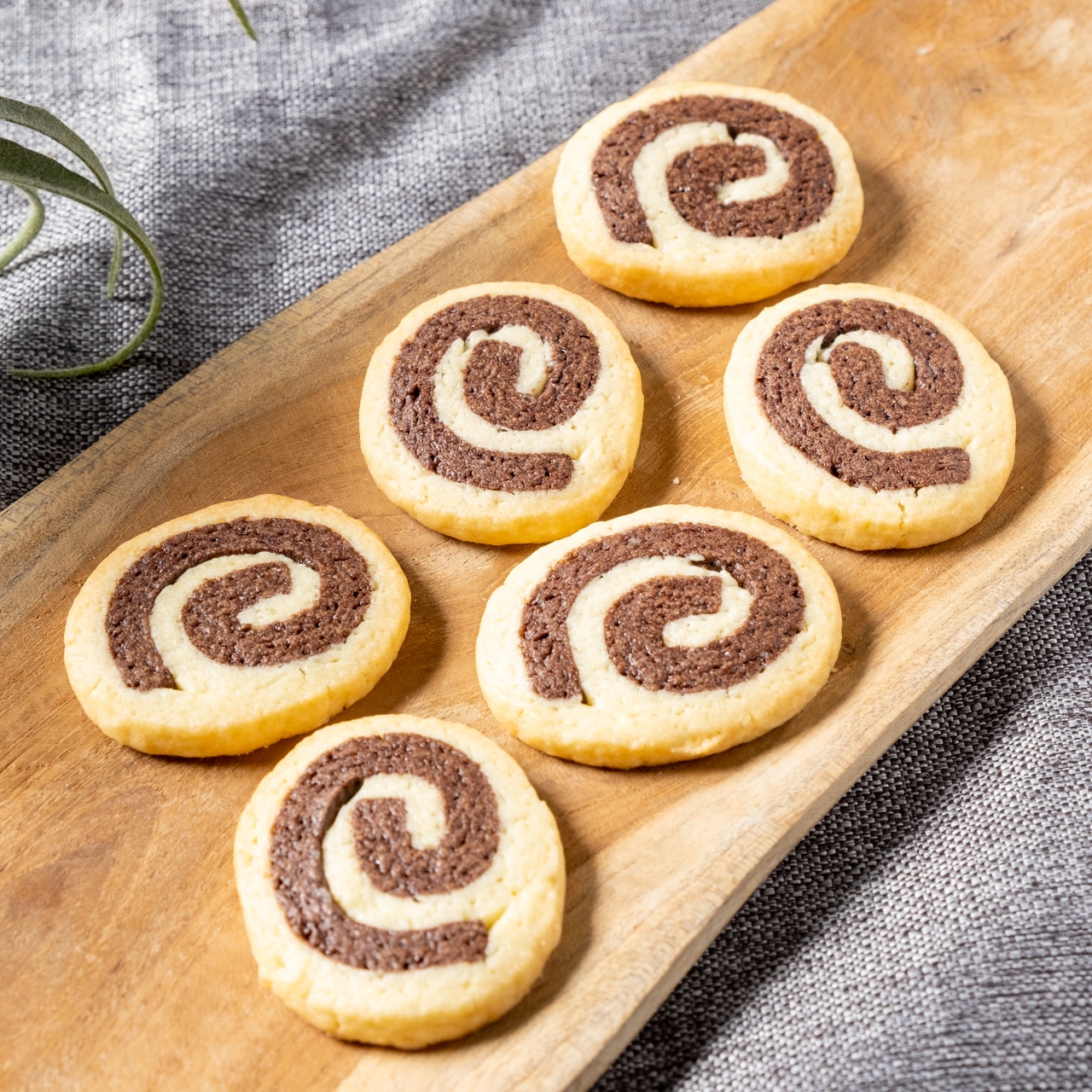 ココアとプレーンを合わせた可愛いぐるぐるクッキーです。