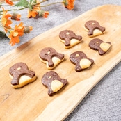 可愛いミニペンギンが7匹入ったクッキーです。よく見るとおなか部分が少し違っているのがポイントです。今にもてくてくと歩き出しそうなクッキーはペンギン好きの方へのプレゼントにも*発酵バターを使用しているのでバターの香りをしっかりと感じていただける濃厚な味に仕上がっています。ココアとプレーンの2層になっています。
